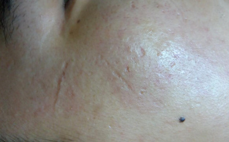 点阵激光治疗表浅凹陷性疤痕后一个月