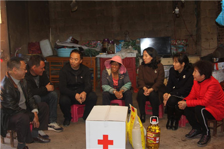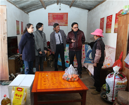 捐赠仪式结束后,医院领导班子一行分别到玉苗村各村民小组的帮扶联系户家中,进行入户调查,了解贫困户信息和帮扶措施落实情况,并向他们送上米、食用油、棉被等慰问品及新春祝福。