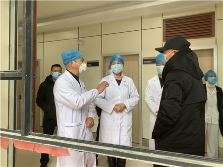 随后,院领导一行前往我院新大楼门诊输液室装修改造区域进行了查看,叮嘱施工方工作人员在保障工程进度的同时,高度注意个人的防护安全;在发热门诊查看时,遇到后勤保障部主任李永建和运送后勤物资的工作人员,马书记一行对他们进行了慰问,并叮嘱一定要保障好医院后勤物资的运送及合理调配,工作人员要重视个人自身防护,让医院疫情防控救治工作稳步运行。