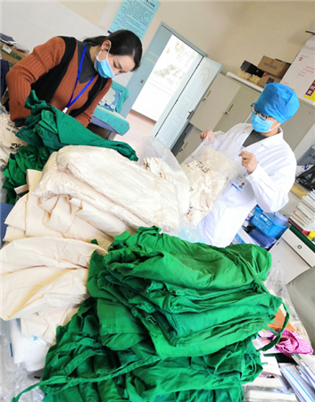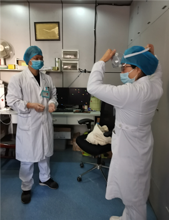 面对防护物资匮乏的状态,质控部全体人员发挥头脑风暴、集思广益,寻出既往的老式隔离衣、防护服、围脖、水鞋、雨衣,再次加做隔离衣、防护服,鞋套、面屏的创新组合利用,尽全力来保障防护到位。