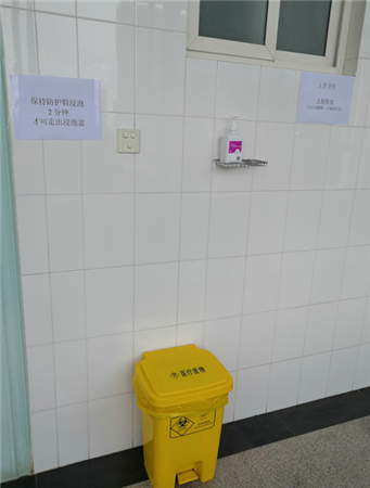 为了让每一位职工将个人防护落实到位,质控部重培训、强指导、抓练习、严督查。从全院培训到个体化练习,医务人员、保洁员、运送员、保安人员等全面覆盖,让每一位职工将防护步骤都熟记于心,信手拈来。在隔离区将防护步骤上墙,一步一个眼,指导工作人员实施。