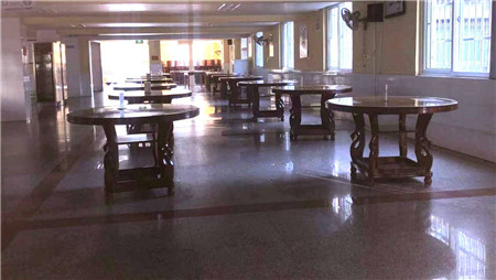 为切实做好抗疫战争中的饮食保障工作,食堂组织员工开展新型冠状病毒肺炎相关知识的培训,要求他们在加工食品的过程中要全程佩戴口罩和一次性手套,每餐间隙都要对台面、栏杆、底板进行防护消毒,做好每餐的留样检测和餐厨废弃物回收处理工作。