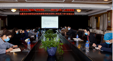 为进一步做好玉溪市新冠肺炎疫情心理危机干预工作,减轻疫情所致的心理伤害,促进社会稳定,玉溪市成立了新冠肺炎心理危机干预专家组,专家组组长由玉溪市人民医院院长、教授曾勇担任,副组长由玉溪市第二人民医院院长马晓元担任。2020年2月13日,在玉溪市人民医院八楼会议室,曾勇院长主持召开"玉溪市应对新型冠状病毒感染的肺炎疫情心理危机干预专家组会议",来自玉溪市人民医院、玉溪市二院的15位专家参加会议,共同商讨新冠肺炎疫情下,如何更好的做好心理危机干预,为民众提供更好的心理援助。