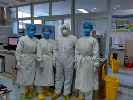 在我院检验科,早上7:50,当戴好帽子、眼罩、口罩外加一件布制隔离衣等防护装备后,检验人一天的工作便开始了。为了让自己和仪器都能处于最佳状态,以便能最高效的开始检测来自全院各部门的门诊、急诊标本,尽可能减轻患者等待的焦虑,检验人马不停蹄的开始准备工作。此时的实验室里,时钟早已变成提醒报告时间的工具,凳子只是摆设,大家的心里想的只是快一点再快一点,尽量少喝水、少上厕所,尽快准确完成结果报告,这样的事例普通平凡,但在疫情面前咱们检验人毅然不惧风险,甘做无私奉献的幕后工作者。