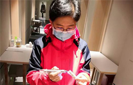 虽然是"小弟",但却是护理队伍里少有的男士。这次出征湖北,身处异乡,许多事情都必须克服困难、亲力亲为。许多带去的较重的物资的搬运,沙彦春总是冲在诸位姐姐们的前面,嘴里说着"姐姐们,我来、我来。"