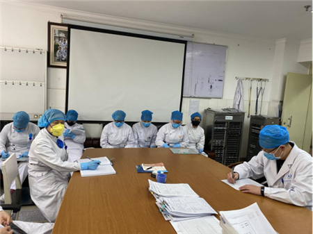 在疫情之下,除积极配合医院做好抗疫工作之外,如何做好肿瘤患者的防护和治疗也成了科室的重中之重。科主任根据肿瘤患者的特殊情况,结合实际,制定了应对疫情的管理办法:严格要求大家规范化诊疗,危重患者收住单人间,定期化疗患者施行预约住院,化疗结束后及时复查尽早安排出院;口服化疗药物和止疼药物治疗者,在预约挂号的基础上,由家属到医院代开药物;认真落实医院防控工作,每日两次病区环境消毒,对患者接触过的门把手、病区扶栏、坐便椅等进行消毒;严格执行陪客管理,定时为住院患者及家属监测体温;做好门诊诊室的消毒隔离;病区内预备发热病房,配备各种防护用品,确保整个病区零感染。