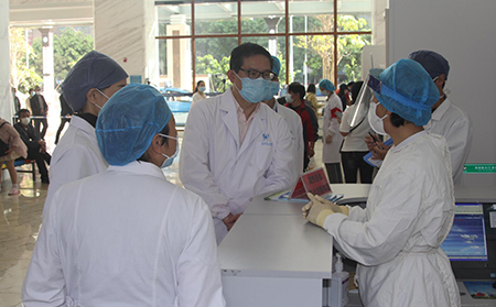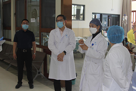 为全面恢复医院正常医疗业务,在疫情防控期间积极筹划复工复产工作,玉溪市人民医院自三月以来恢复正常生产生活秩序,全面向人民群众提供日常医疗服务。为确保复工复产落地落细,2020年3月31日上午,玉溪市人民医院曾勇院长到医院1号楼(新大楼)一楼大厅、各门诊诊区等重点岗位督导工作开展情况,副院长蔡德芳、张锡光、门诊部主任简波、院务部主任胡晓俊及相关工作人员陪同督导调研。