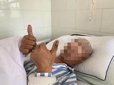 这是一例昏迷患者,入院时右侧瞳孔散大,急诊微创手术后患者渐清醒,四肢活动正常,CT提示右侧额颞顶部大量血肿已清除,手术效果明显,获得患者赞誉。