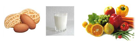 例如. 鱼、肉、蛋、 坚果和蔬菜等