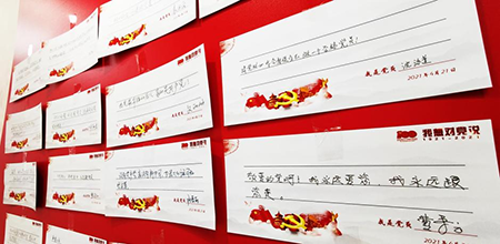 下午14:30,老党员们在活动正式开始前就来到现场,亲手裱花制作生日蛋糕。这样的形式对于支部老党员们来说,还是第一次,大家齐心协力,认真在蛋糕上画出红色的党徽,表达自己对建党100周年的激动感怀之情,共祝我们的党生日快乐。并在领取到的党员留言卡上写一句最想对党说的话,粘贴在党建心语墙上。