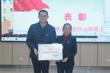2021年11月23日下午,玉溪市委卫生健康工作委员会举办2021年“书记面对面”“基层党组织书记讲坛”暨“党课开讲啦”活动。在会上,玉溪市人民医院党委副书记、院长曾勇同志为获得“省级规范化建设示范党支部”的感染性疾病科党支部授牌,支部书记赵丽惠同志代表支部上台接受表彰。