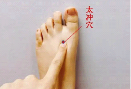 太冲穴位置:足背,第1、第2跖骨间,跖骨结合部前方凹陷中,左右各一个穴。