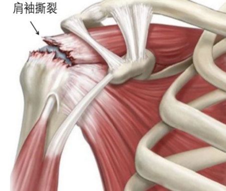 肩袖:是由冈上肌、冈下肌、肩胛下肌和小圆肌的肌腱组成的包绕肱骨头的肌腱复合体,对维持肩关节的稳定和肩关节活动起重要作用。如果把人比作一台机器,那肩关节就是其中重要的一个铰链,包绕肩关节的肩袖肌就是铰链中重要的链条,控制着肩关节的运动。肩袖损伤或撕裂后,就如同机器中的铰链或者链条被破坏,机器就运作不了。在生活中,不小心摔跤时手臂撑地、提举重物等都可能造成肩袖损伤,运动中使用过度,或者随着年龄增长肩袖肌腱逐渐劳损退变也会导致撕裂损伤。肩袖损伤一开始可能只是较小的撕裂破口,但如果出现肩痛后,自诊为“肩周炎”而开始自行锻炼,这些小裂口会逐渐扩展成为大的撕裂创伤,从而加重肩痛的程度。肩袖损伤典型的症状就是疼痛,肩部上举无力,不动的时候也痛,夜间会被痛醒,严重者甚至端茶杯和夹菜都有困难。