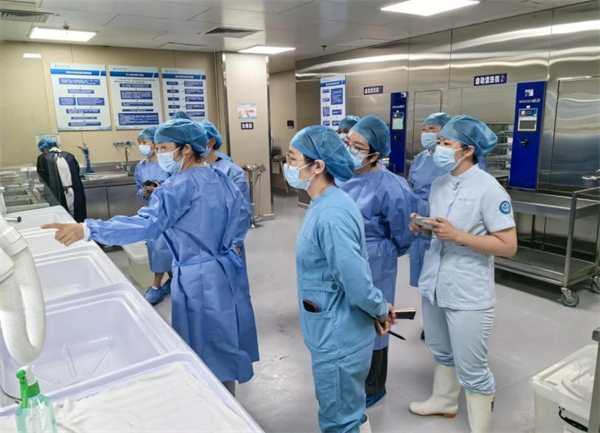 活动现场,大家依次从无菌物品存放间、检查包装及灭菌区、去污区、水处理间进行现场查看。并从整体布局、工作流程、设备设施管理、质量控制、文书记录、人员分工等方面进行认真检查,对存在的问题按照要求行业标准给出具体改进措施。