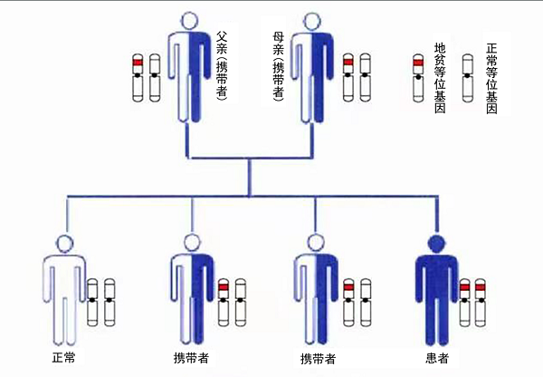 地中海贫血如何遗传是社会大众十分关注的问题。正常情况下,一个人拥有两组正常的珠蛋白基因,一组遗传自父亲,另一组遗传自母亲。地贫是常染色体隐性遗传病,男女发病的概率相等。如果夫妇一方为α-地贫,另一方为β-地贫,大多数情况不会生育中重型地贫(α-珠蛋白基因拷贝数增加除外),可以正常妊娠并做好孕期保健。而假如一个轻型地贫的人与正常人结婚,子女中有一半的机会出现轻型地贫。如果夫妇双方为同一类型的轻型地贫,每次怀孕都有1/4的机会是重型地贫、1/2的机会是轻型地贫(同父母一样)、有1/4的机会生育正常儿,因此,每次怀孕都要进行产前诊断。