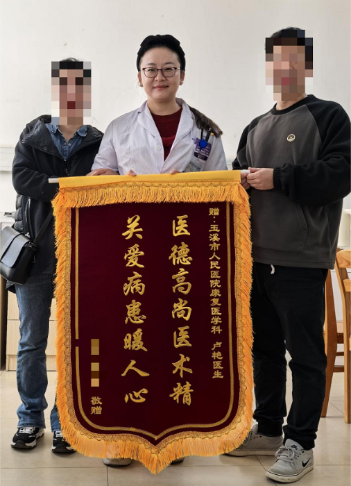 11月20日上午,患者朱先生(化名)的家属捧着写有“医德高尚医术精、关爱病患暖人心”字样的锦旗走进医生办公室,向我院康复医学科卢艳医生表达谢意。