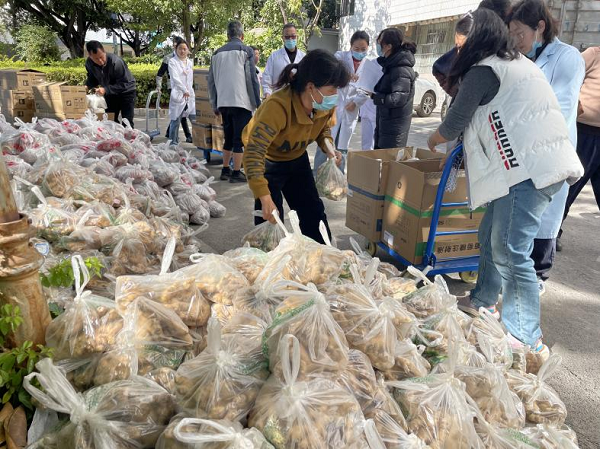 1月24日,我院职工以不低于市场售价的价格,向帮扶村订购了301份香芋、334份黄姜、248份荞子面,总价值约1.2万元。
