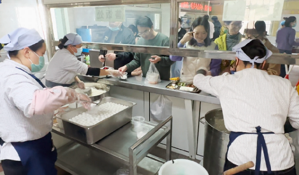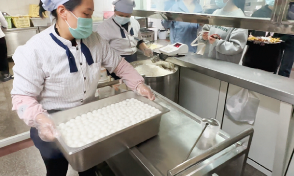 午饭时间,花生、芝麻糖馅的汤圆已煮好备餐,每一位到食堂就餐的职工都能免费领取到一份香甜的汤圆,同时食堂还为手术室餐厅及临床科室电话订餐的医护人员都配送了热腾腾的汤圆。职工们吃着甜甜糯糯的汤圆,聊着家常,心中充满了温暖。“医院以职工为重,职工以患者为重。”小小的汤圆不仅体现了医院“以人为本”的理念,也凝聚着医院对职工的关怀和支持。