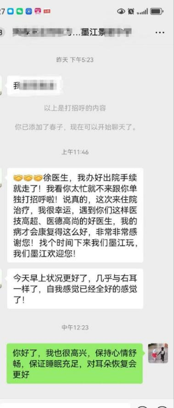 “徐医生,这次来住院治疗,我很幸运,遇到你们这样医技高超、医德高尚的好医生,我的病才会康复得这么好,非常非常感谢您!”