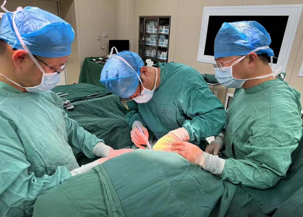 2023年8月,患者张女士因右乳肿物快速增长入院,术中确诊为罕见的乳腺骨肉瘤,首次手术虽顺利完成,但肿瘤复发迅猛,病情陷入困境。面对这一挑战,马鹏勋团队在多次MDT讨论、咨询国内权威专家后,于2024年1月27日成功实施医院首例VY肌皮瓣游离术。手术历时4小时,不仅彻底切除了胸壁复发肿瘤,更利用带血管蒂的肌皮瓣完成了创面的精细修复,实现了功能与形态的双重保障。术后,张女士恢复良好,这一突破为马鹏勋团队处理复杂病例提供了宝贵经验。