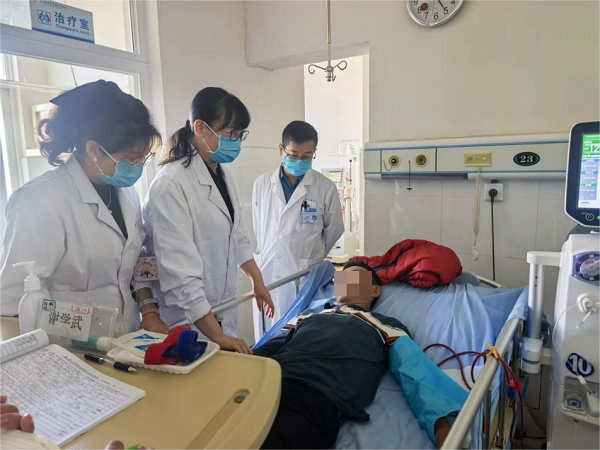 专家团队抵达后,立即深入肾内科病房和血液净化中心进行教学查房。孙阳重点查看了几位病情复杂的重症患者。面对一位长期透析合并反复消化道出血的患者,他细致问诊、查阅病历,结合临床经验,对诊断思路、治疗方案及长期管理提出个性化建议,为基层医生厘清方向,也为患者带来希望。