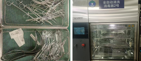 污染器械经清点后放入专用清洗篮筐,经初步处理后送入自动清洗消毒机。