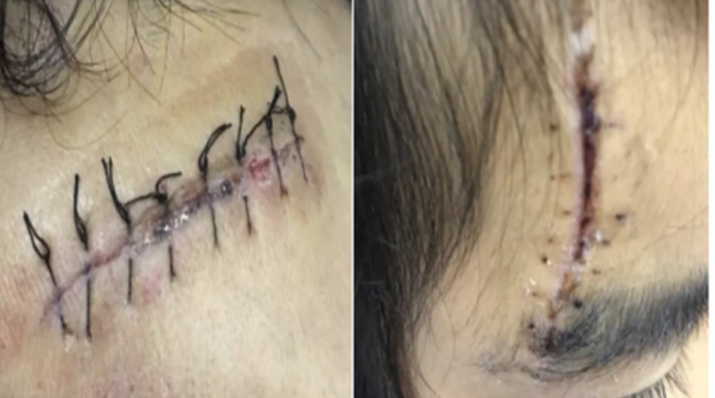 1.蜈蚣样疤痕:粗线、高张力缝合导致的针脚凸起和疤痕增生。