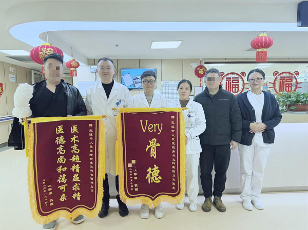 玉溪市人民医院骨外三科近日收到的感谢锦旗中,一面写着“Very骨德”的创意之作格外引人注目。这份来自患者雷先生及家属的巧妙赞誉,与另外两面赠予杨聪林主任和全体护士的锦旗一道,承载着沉甸甸的谢意,讲述了一个关于信任与康复的温暖故事。