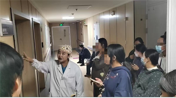活动伊始,医护人员带领宝妈宝爸从入院紧急通道开始,详细讲解了如何停车、办理住院手续,以及产房的具体位置、乘坐几号电梯到达产科住院部。随后,大家参观了病区环境,熟悉了病房布局、待产区域和产后休养区。通过实地走访,准爸妈们对入院流程有了直观了解,消除了对陌生环境的担忧。