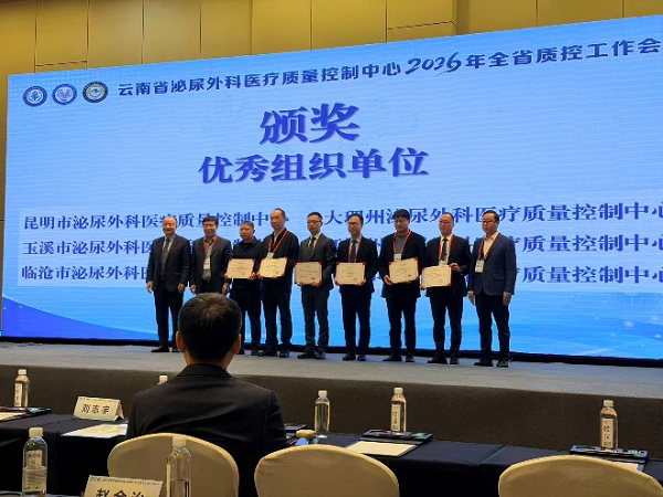 2026年3月21日,云南省泌尿外科医疗质量控制中心2026年全省质控工作会议召开。会上,玉溪市人民医院泌尿外科质控中心因在“云南省泌尿外科质量控制中心规范化诊疗巡讲系列学习”中组织协调有力、执行成效显著,被授予“优秀组织单位”荣誉称号。此次获奖体现了省级质控中心对医院泌尿外科质控工作的高度认可,也充分肯定了其在推动区域泌尿外科诊疗规范化发展方面的积极贡献。