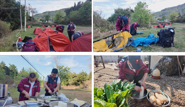 本次演练坚持“自主保障、自力更生”原则,充分考验队伍野外生存能力。训练期间,队员们分工协作、密切配合,因地制宜开展野外生活保障:利用现有资源搭建住宿帐篷,规范设置值守点位与时间,保障夜间营地安全;依托野外炊具,自主开展食材处理、烹饪加工,解决野外饮食保障难题。