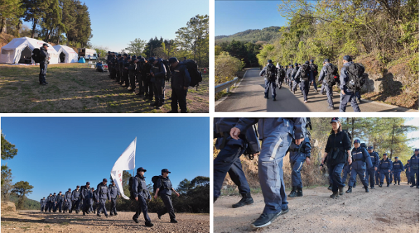 为进一步锤炼队员体能极限与意志品质,本次驻训增设10公里负重徒步科目。训练中,队员们背负救援装备,精神饱满、斗志昂扬,沿着龙马山崎岖山路稳步前行。十年前,前辈们也曾在这条山路上挥洒汗水;十年后,新一代队员踏着同样的足迹,相互扶持、团结协作,克服山路崎岖、体力消耗大等困难,始终保持队伍整齐、纪律严明,以顽强毅力完成徒步训练任务。
